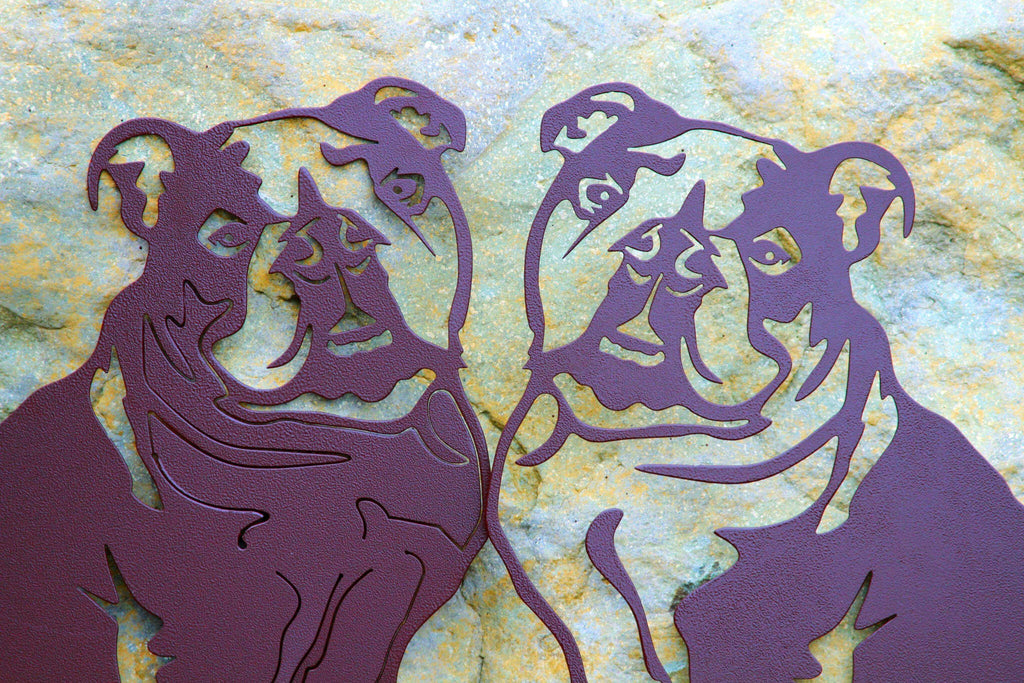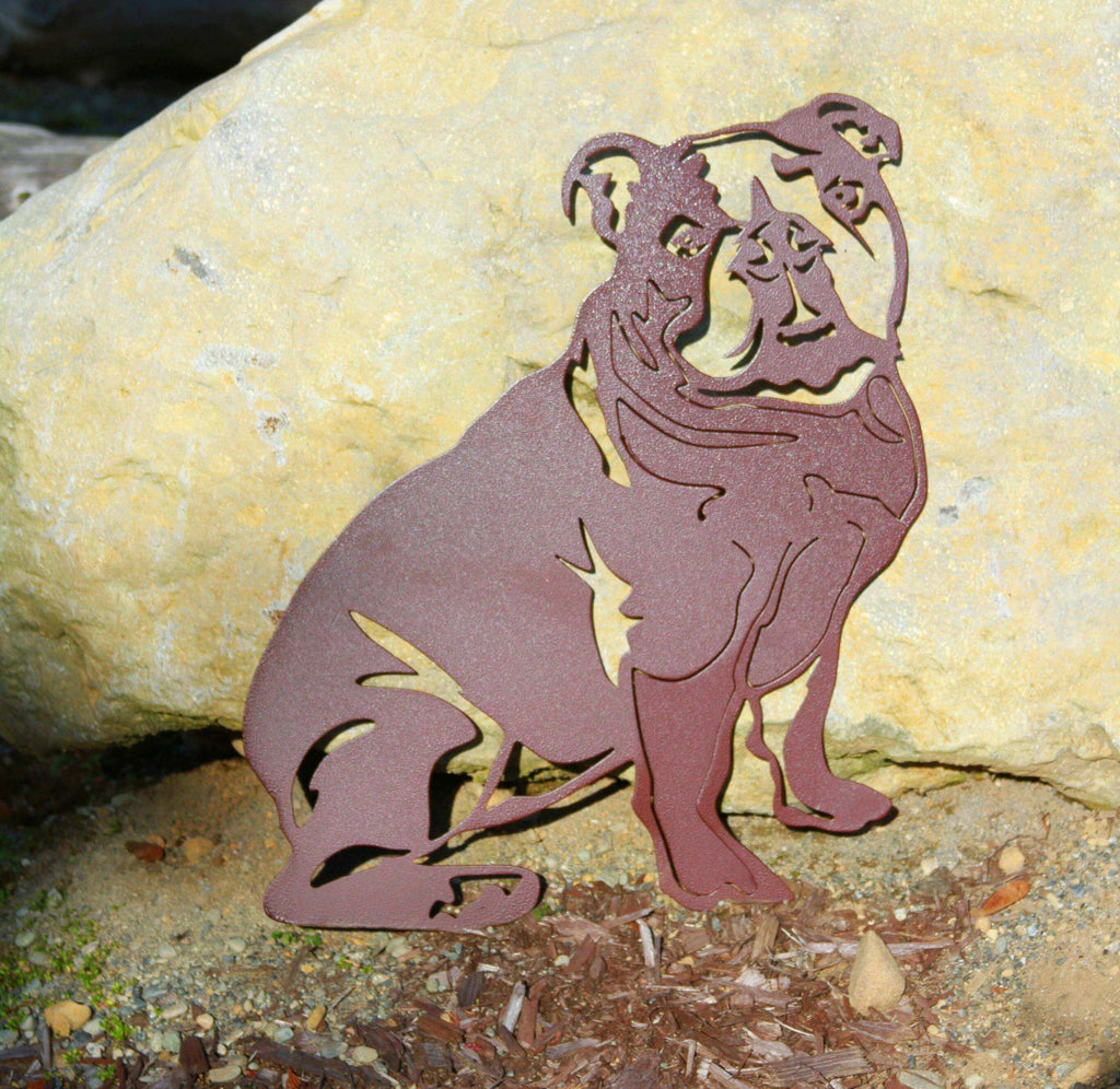Cut from 16 gauge steel and powder coated. Can be displayed inside or outside.
