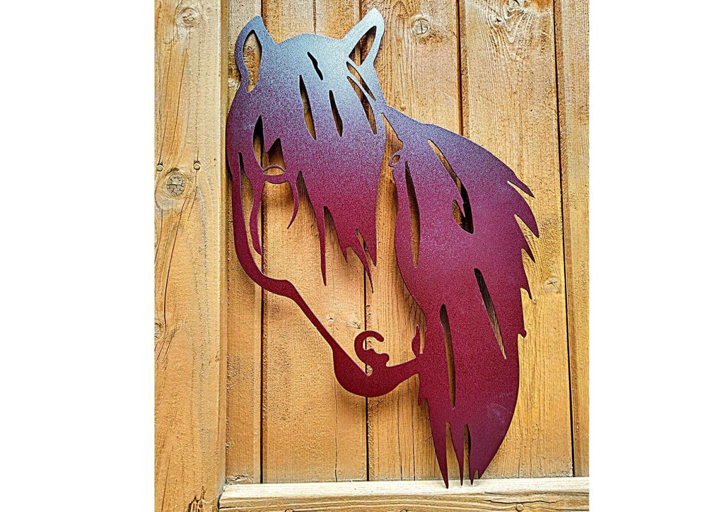 Cut from 16 gauge steel and powder coated. Can be displayed inside or outside.
