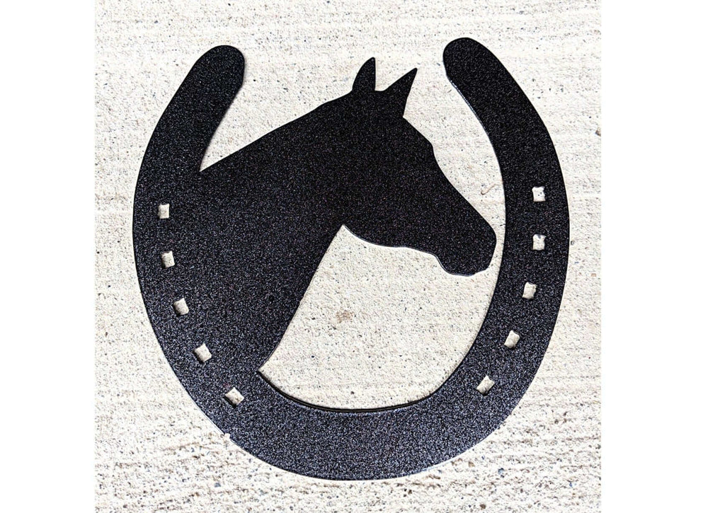 Cut from 16 gauge steel and powder coated. Can be displayed inside or outside.
